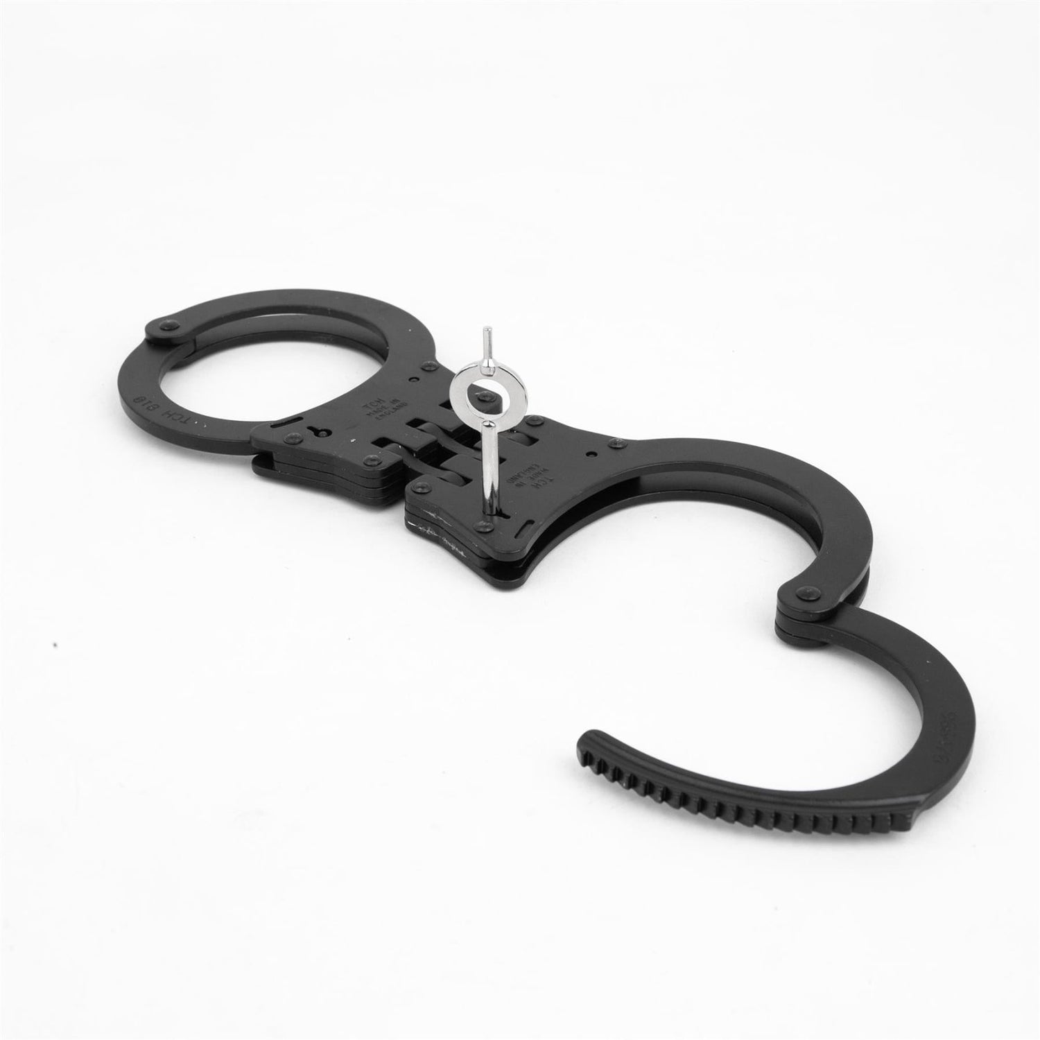 Manufactured in the UK, these high-quality hinged cuffs have independently moving ratchet bars, rotating arm backloads for speedcuffing & double locking mechanism. Precision engineering ensures the rotating arm swings through the handcuff, engaging the ratchet bars every time.