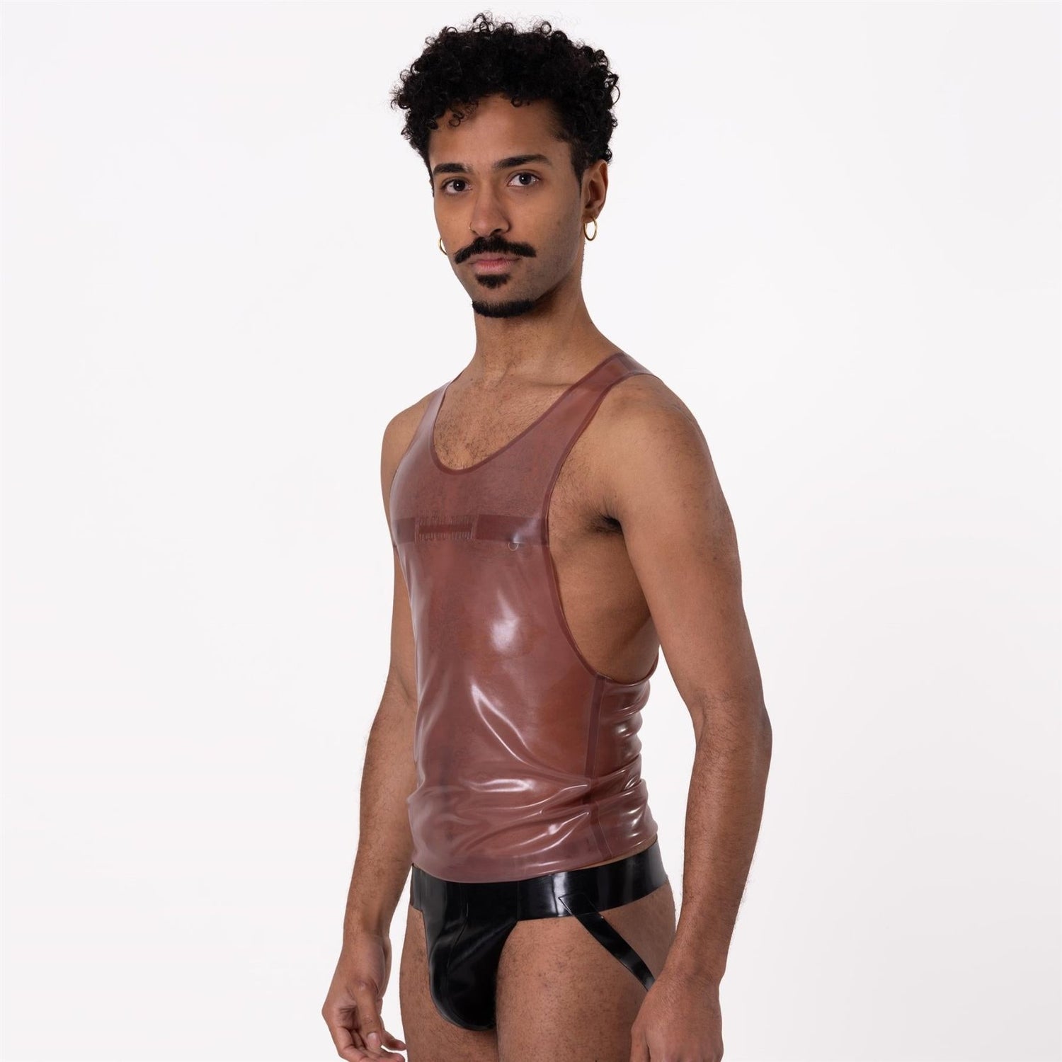 Bring a retro edge to your play look with the Vapour Rubber Tank, a piece that blends classic athletic style with the seductive allure of latex.