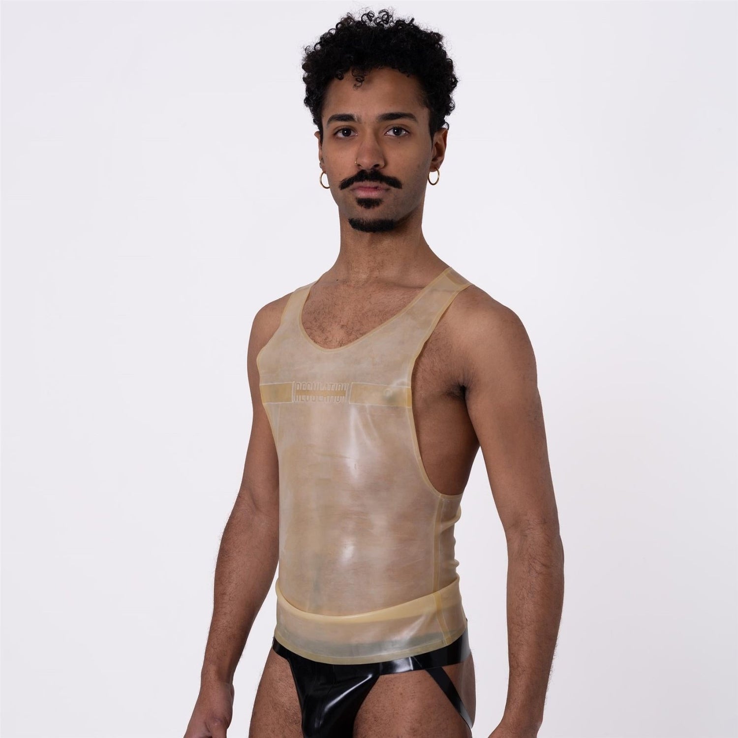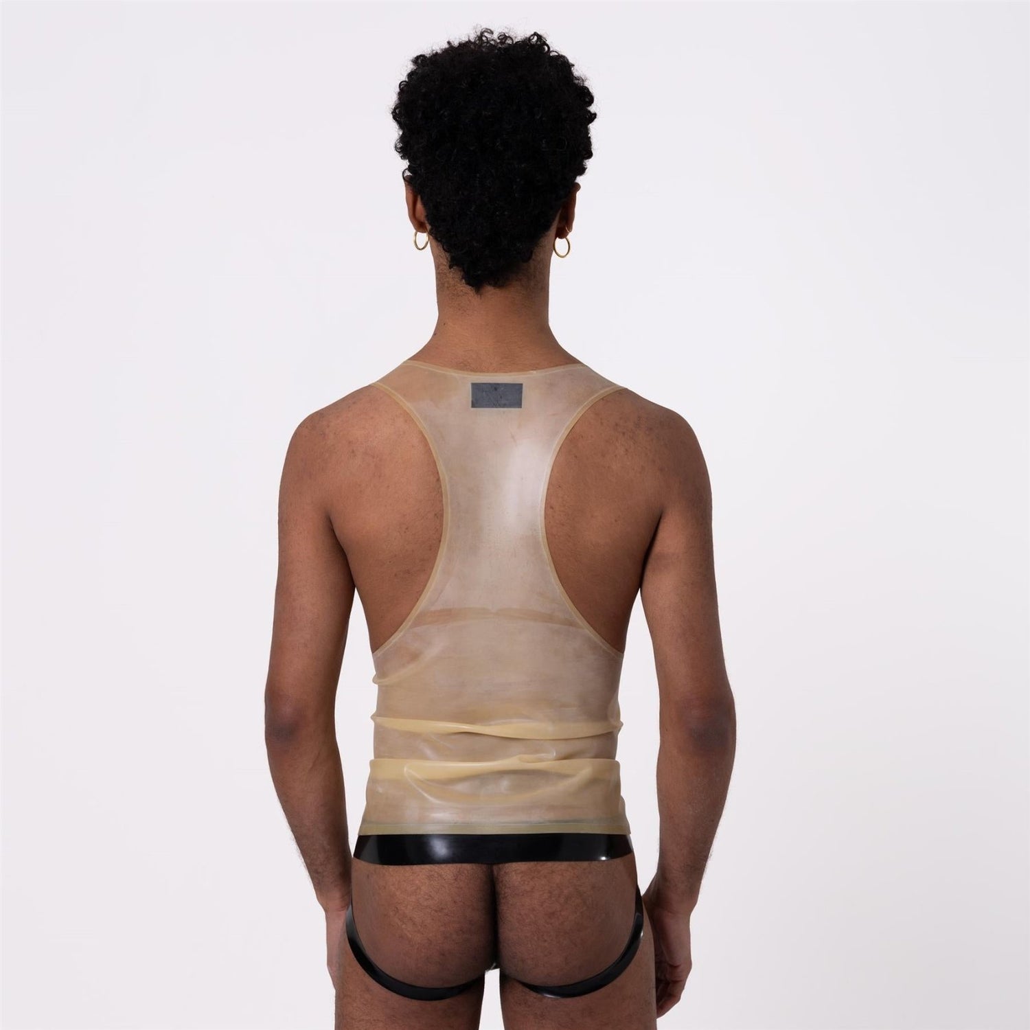 Bring a retro edge to your play look with the Vapour Rubber Tank, a piece that blends classic athletic style with the seductive allure of latex.