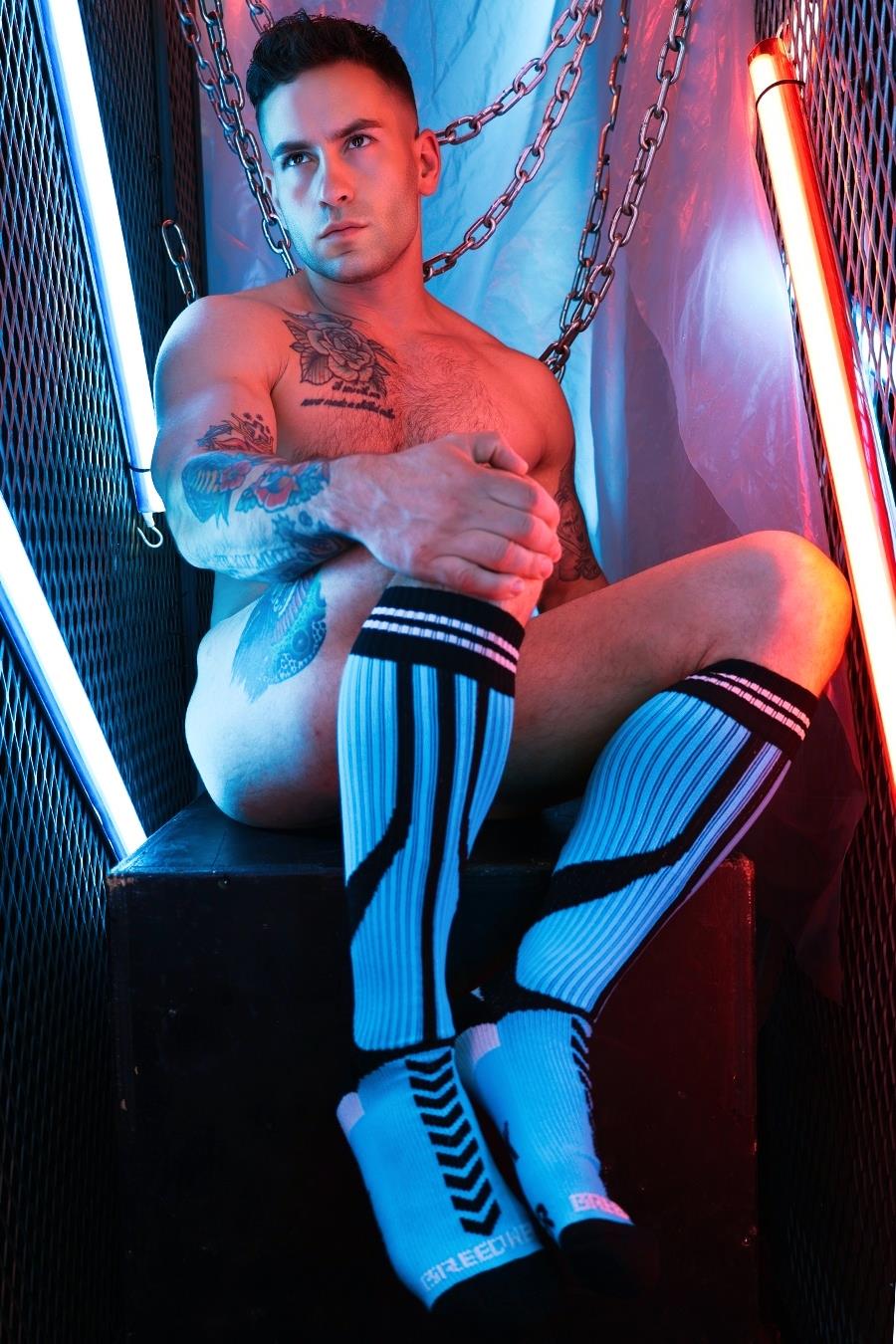 When you think of Jocks, Chocks, and the c*cks that go in them, you think Breedwell. Now you can add another fierce, sexy style of Socks to that list: the new Sucker Socks! The brightest, boldest sock style yet, the Sucker socks are easily matchable to any of the items in the Circuit Breaker group and have a modern design that features a chevron pattern along the calf, Breedwell logos on the toes, and our most hard-core text on the sole, which reads: Suck it harder. Get yours in Neon Pink, Neon Orange, Black and Aqua Blue, slide ‘em on, pull ‘em up, and then get on your knees and suck.